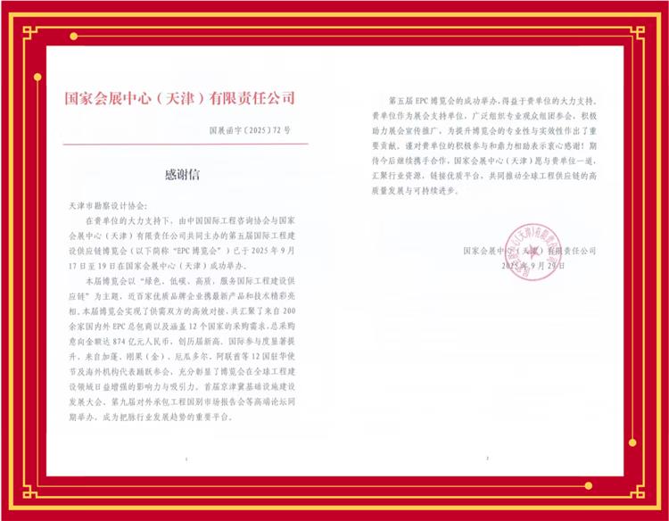 • 国家?x)展中?j)(天|)有限责Q公司致天z市(jng)勘察设计协会(x)感谢?/p>